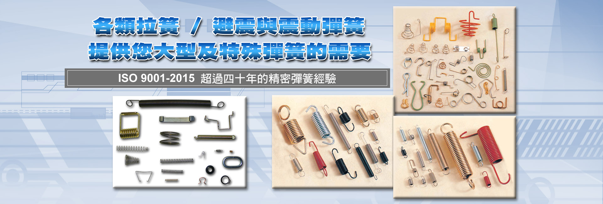 本厂设备有全自动各式弹簧成型机、测验仪器,生产各种精密压缩、拉力、扭力钢带弹簧及各种华司、垫圈、金属线材加工制品,品质严谨,如期交货,并坚持着以品质优越、永续经营之理念,不断创新,挑战目标。